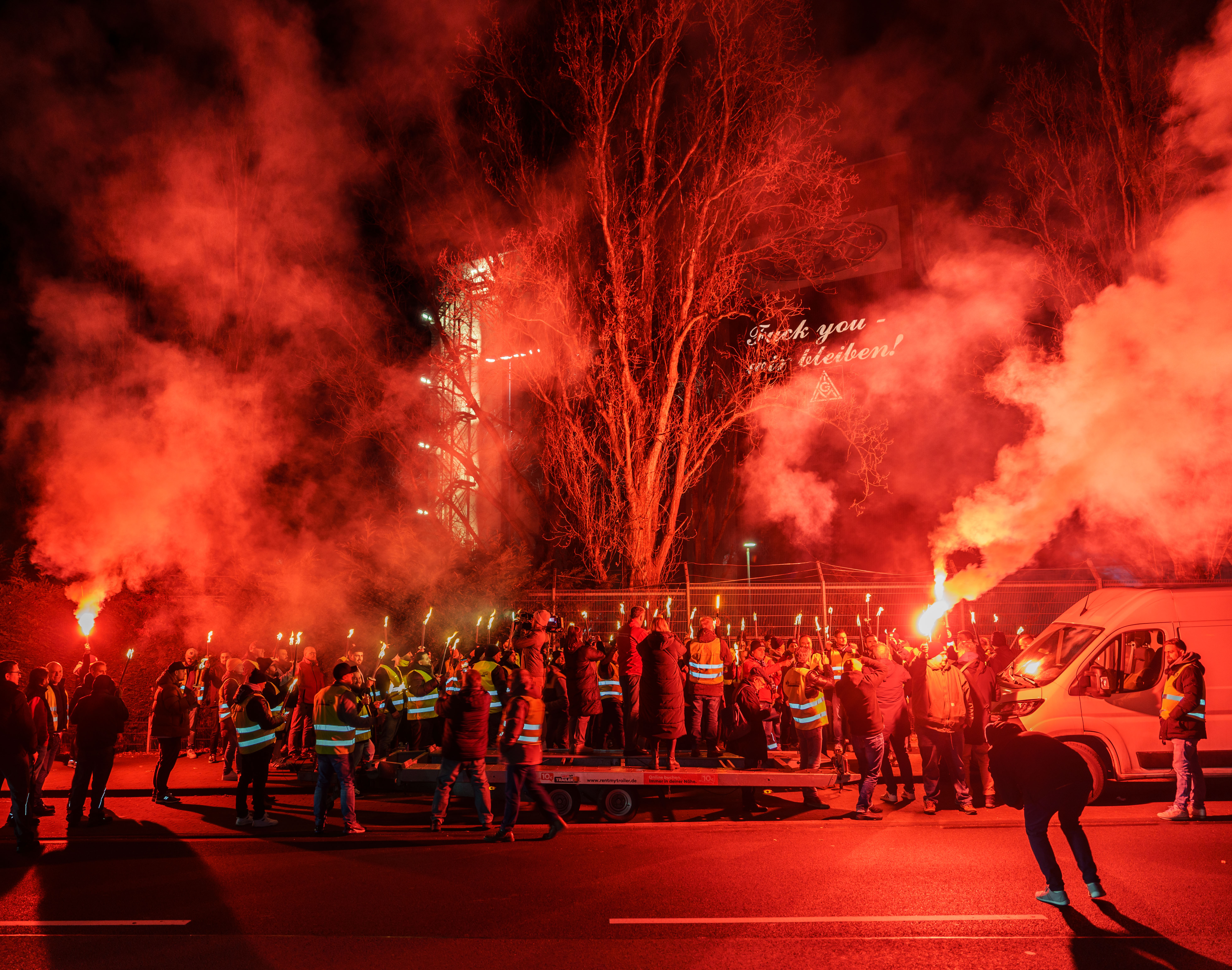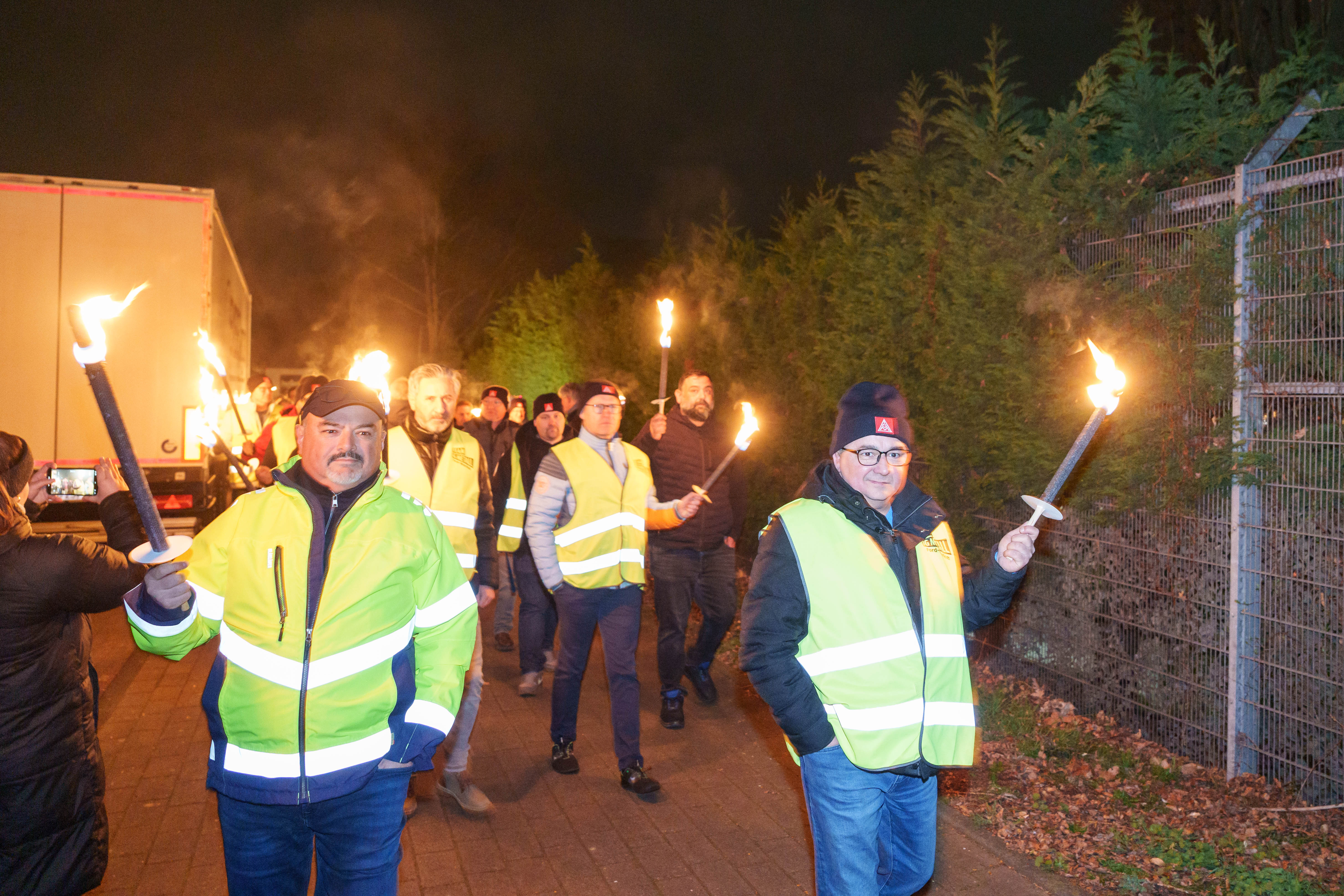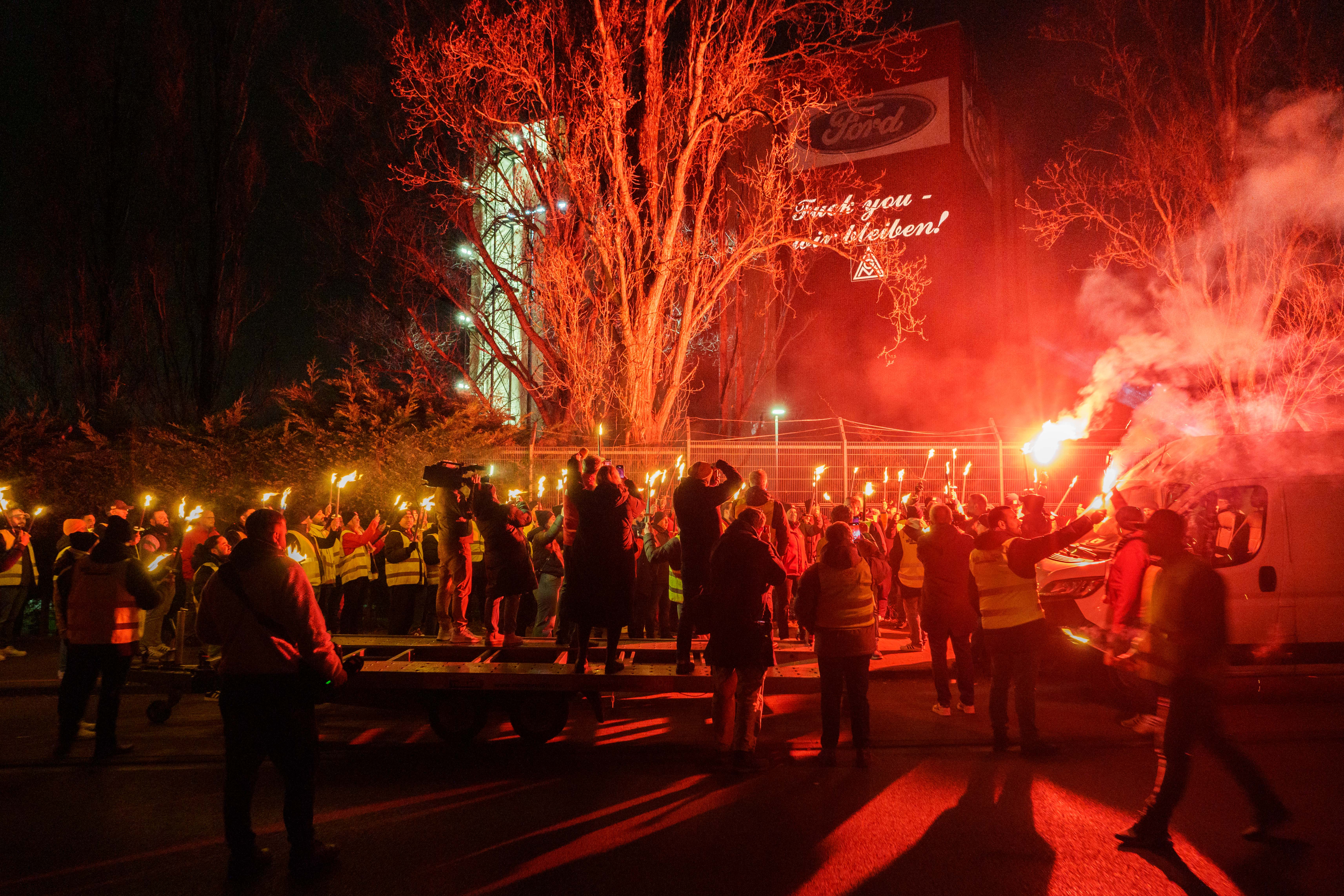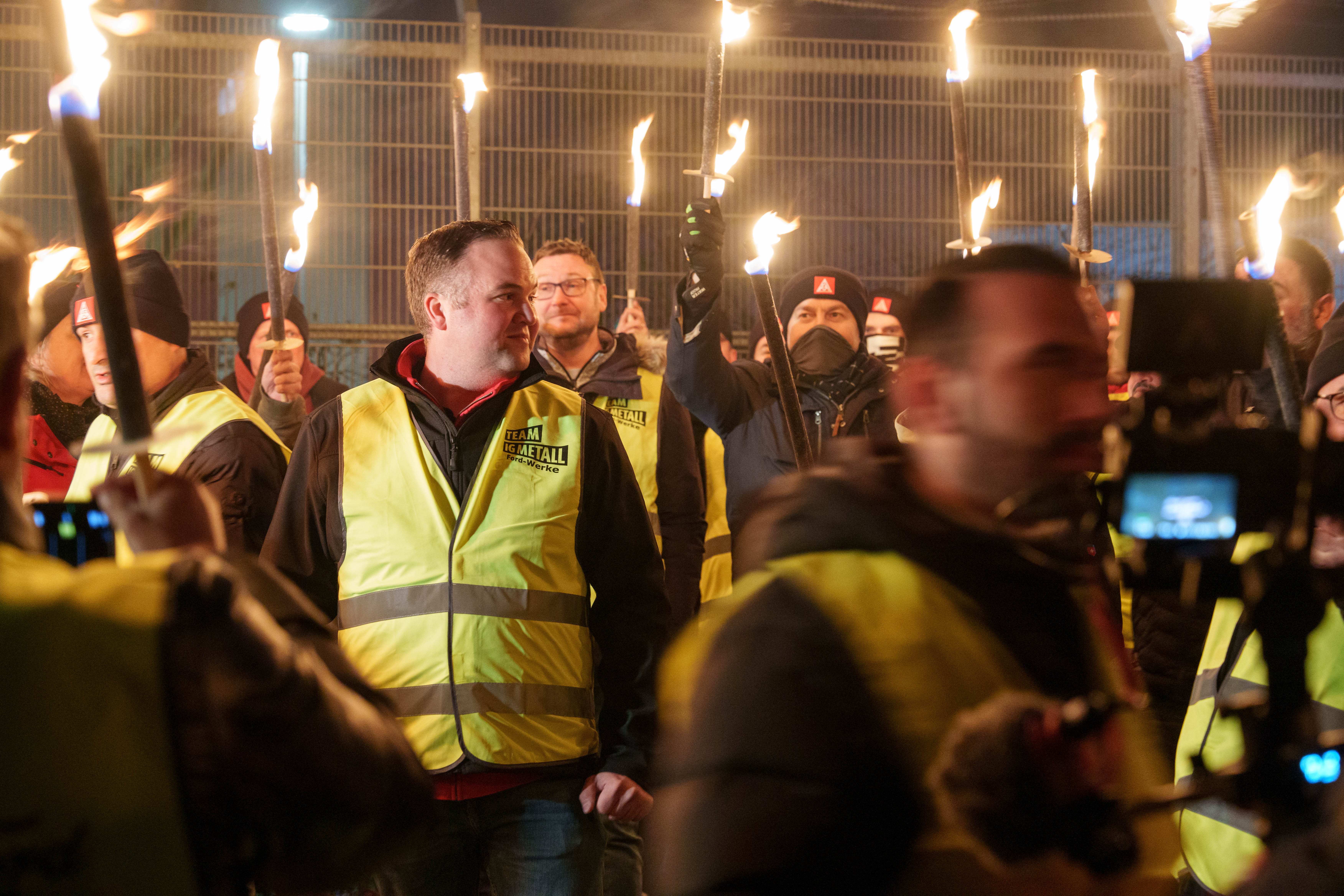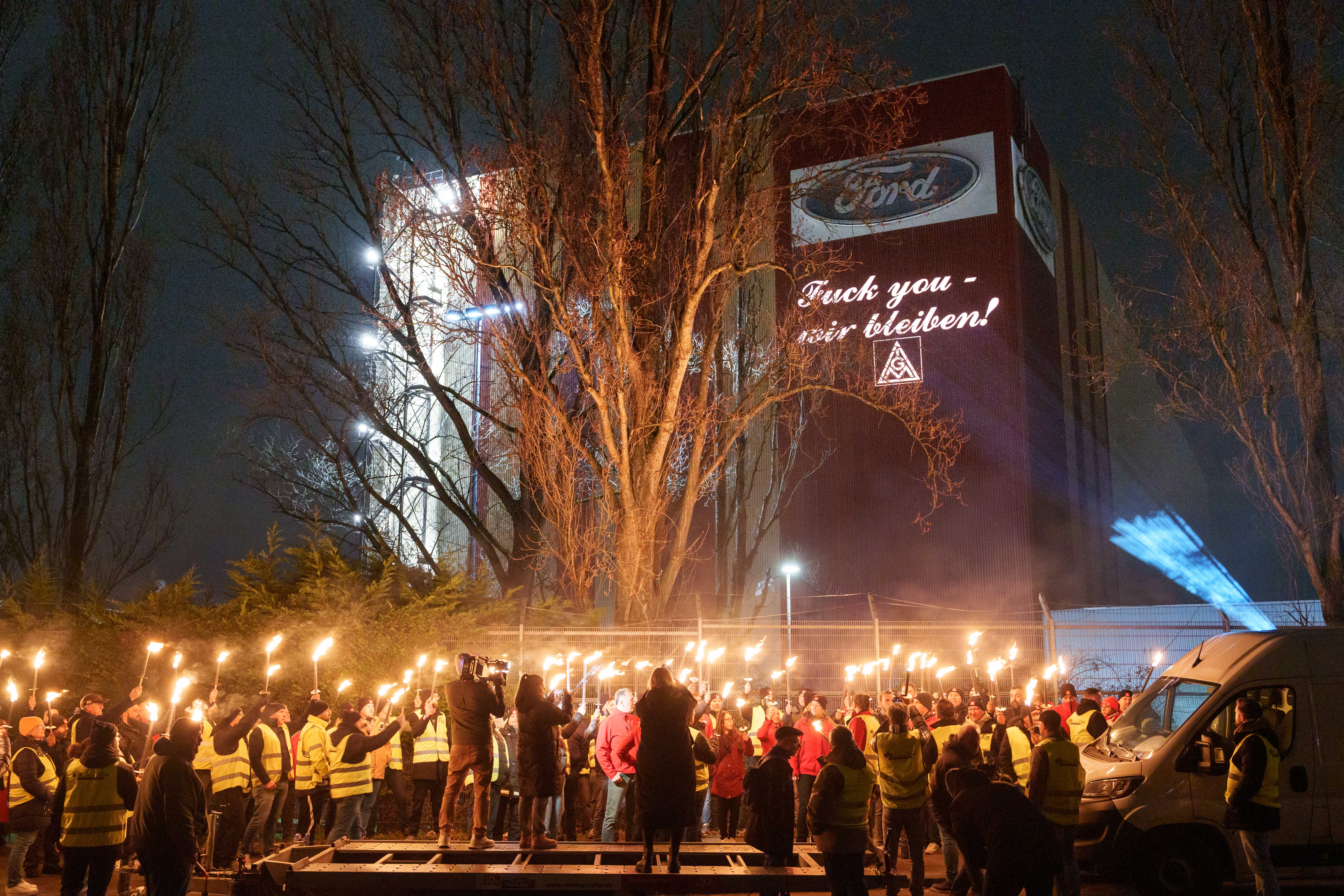 Die Mitteilung über die Aufkündigung der Patronatserklärung war für die Belegschaft unerträglich. Unsere IG Metall Vertrauensleute berichten über Verzweiflung, Angst, aber auch eine enorme Wut. „Wir wollten für unsere Kolleginnen und Kollegen ein Zeichen setzen, das genau diese Wut zum Ausdruck bringt“ sagt David Lüdtke, Vertrauenskörperleiter Ford Köln, „und welches auch klar macht, dass wir als Gewerkschaft jetzt nicht kuschen werden! Im Gegenteil, durch diesen Tiefschlag des Arbeitgebers ist die Entschlossenheit zu einem Arbeitskampf in der Belegschaft maximal.“ Deshalb hat sich die Vertrauenskörperleitung am Dienstagabend mit einer eindeutigen Botschaft zu einer Mahnwache vor dem Werksgelände versammelt. „Die Kolleginnen und Kollegen des Ersatzteilzentrums sind natürlich mit dabei“ ergänzt Frank Koch, Vertrauenskörperleiter Ford FCSD, „das Damoklesschwert hängt schließlich nun über der gesamten Belegschaft.“ Auf der Betriebsversammlung am 12.03. hat die Belegschaft dann selbst die Möglichkeit der Geschäftsführung zu zeigen, was sie von diesem Irrsinn hält.